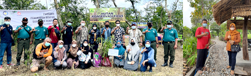 地滑り防止のため、地元コミュニティを支援し、ケルート山の森林再生に取り組む様子