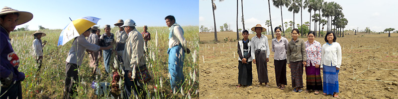 本研究で開発する対策は、出版物の発行、ステークホルダーへの提言、ネピドーでの実証圃の準備による改良普及員や農家の研修などの手段を通じて、グリーンフード技術の社会的実装につながっていきます。ゴマの収穫期後に緑肥の被覆作物を栽培してシストの孵化を促し、土壌中で飢餓状態に陥らせてセンチュウ密度を低下させることを農家に推奨します。