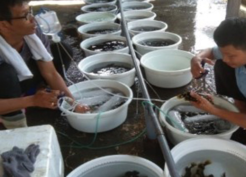 ナマズ養殖におけるホンダワラ属海藻から抽出したアルギン酸塩の免疫賦活剤としての活用の研修。研修は全寮制学校で実施。