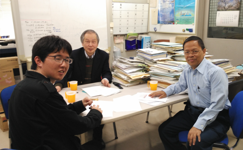 2016年4月、インドネシア・ジョグジャカルタでの微粒子・エアロゾルのモニタリングに関する研究協力について、慶應義塾大学の田中茂教授と議論。