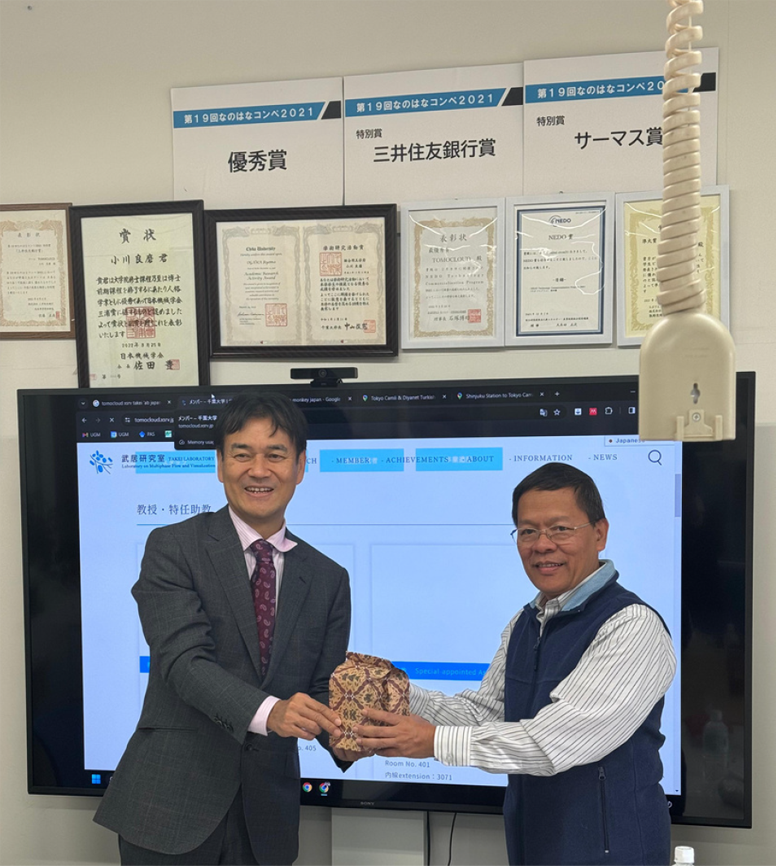 2023年12月、千葉大学の副学長(研究・産学連携担当)武井正弘教授の研究室を訪問し、研究および学生・教職員の交流を含む学術連携について協議。